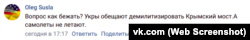 «Вопрос: как бежать? Укры обещают демилитаризировать Крымский мост. А самолеты не летают», – вопрошает Oleg Susla.