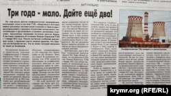 «Крымская правда» в статье под заголовком «Три года – мало. Дайте еще два!» рассказывает о ситуации вокруг ТЭЦ под Симферополем и в Керчи. В скором времени их планируют отключить для проведения реконструкции, поэтому потребителям предлагают установить автономное отопление. Это известие вызвало обеспокоенность жителей близлежащих районов. «Чтобы не оставить без тепла тысячи людей, власти могут принять следующие меры. Первый вариант – за оставшиеся полгода построить девять новых источников тепловой энергии в Симферополе и семь – в Керчи, а также реконструировать часть уже существующих котельных и теплосетей. На все это понадобится около 40 млн рублей. Второй вариант: руководству республики придется обратиться в федеральный центр с ходатайством о продлении режима вынужденной генерации до 1 января 2023 года. Эта отсрочка даст возможность провести модернизацию обеих ТЭЦ за счет инвестора – без привлечения бюджетных средств», – отмечает издание.