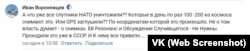 «А что, уже все спутники НАТО уничтожили?? Которые в день по раз 100 -200 из космоса снимают это. Или GPS заглушили?? По координатам которой это произошло. Не о том власть думает – о снимках. Ей резонанс и обсуждение случившегося не нужны. Проходили это уже в СССР. И к чему все привело», – размышляет Иван Воронежцев.