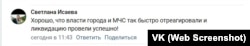 «А ещё бы правду писали, вообще класс был бы. А то прочитаешь: «все в порядке»… А позвонишь – все в мыле, как так?» – пишет Ирина Берест в группе «Инцидент Крым|Симферополь|Севастополь».