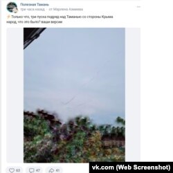 Впрочем, жители Таманского берега Краснодарского края России в своих пабликах сообщали, что видели в небе следы работы российских ПВО «со стороны Крыма».
