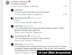 В своих комментариях жители Керчи начали писать, где именно они находились, когда услышали звуки взрывов. Эта импровизированная перекличка показала, что звуки были хорошо слышны в разных районах города, отдаленных друг от друга, а также за городом. Было также много упоминаний мест, приближенных к морю: Осовины, Юркино, пляж «Змеинка».