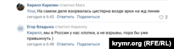 Ему вторит Анастасия Русакова: «Не пишите бред, Аршинцево не далеко от маяка, службы работают, пожар почти потушили». В ответ ей Илья Бадия публикует фото и видео горящих цистерн и разрушенных пролетов моста.