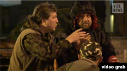 На этом скриншоте Щекун обращает внимание на мужчину с усами и в вязаной шапке, идущем впереди колонны. По словам активиста, он также участвовал в его похищении. Он был одним из старших среди «дружинников» и имел при себе рацию.