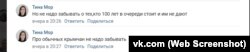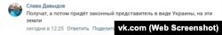 «Ага, а потом так же отнимите, как Крым с Донбассом. Проходили уже», – пишет пользователь «Вконтакте» Oly Knyzeva.