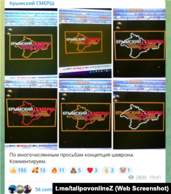 Пророссийский активист из Феодосии, организатор движения «Крымский СМЕРШ» и автор одноименного телеграмм-канала Александр Талипов известен тем, что организовывает преследование российскими силовиками проукраинских крымчан. Просил помочь разработать шеврон для «Крымского СМЕРШа».