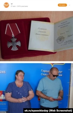 В социальных сетях есть и фотографии посмертного награждения орденами Мужества, благодаря которым все эти люди оказались на стенде. Фотографии одной из таких церемоний публикует в "Одноклассниках" сообщество Spassk Today из города Спасск Приморского края. Здесь служил сержант Алексей Пушило, погибший, если верить информации на стенде, в тот самый роковой для 64-й бригады день, 25 апреля, когда она лишилась не менее семи своих бойцов.