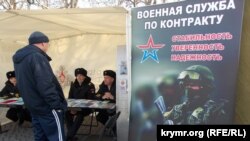 Во время праздника российские военные зазывали служить в армии. Для рекрутского набора установили столы с агитационными материалами.