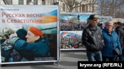 В палатке под названием «Русская весна» разложили газеты и развесили фотографии о событиях 2014 года в Севастополе и Крыму. Экскурсовод рассказывал о роли российских военных и местных активистов в аннексии Крыма. Недалеко развесили баннеры с фотографиями аннексии и митингов. Через динамики постоянно транслировали аудиозапись митинга в Севастополе 23 февраля 2014 года.