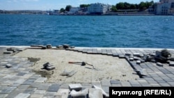 На мысе Хрустальном в центре Севастополя штормом сорвало плиточное покрытие, сообщает корреспондент Крым.Реалии.