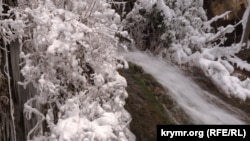 Снегопады в Крыму наполнили подземной водой водопад Су-Учхан (с крымскотатарского – «Падающая вода»), который находится на территории ладшафтно-рекреационного парка «Урочище Кизил-Коба» возле села Перевальное Симферопольского района, сообщает корреспондент Крым.Реалии.