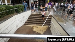 В Ялте 6 сентября после ливня затопило подземный переход на площади Маршака у бывшего кинотеатра «Спартак», сообщает корреспондент Крым.Реалии.