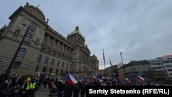 В Праге группа протестующих собралась у здания чешского Национального музея и требовала снять украинский флаг со здания, который висит там с февраля 2022 года, сообщает корреспондент Радіо Свобода. Флаг был вывешен после начала полномасштабного вторжения России в Украину в знак солидарности.