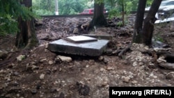 В Севастополе 18 июня в середине дня прошел сильный ливень. Канализация не справлялась, а потоки воды со склонов стекали в море, грязь перекрывала пешеходные дорожки, сообщает корреспондент Крым.Реалии.