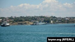 Корабль с закрашенным бортовым номером прошел по фарватеру Севастопольской бухты мимо крепости-музея «Михайловский равелин» около 11:05 по местному времени.