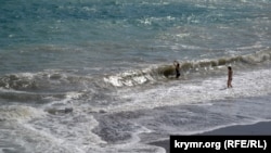 В Ялте туристы продолжают купаться в море, несмотря на 4-х бальный шторм. Как сообщает корреспондент Крым.Реалии, на пляжах города вывешены таблички о запрете купания, однако это не останавливает отдыхающих.