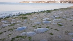 Тысячи медуз выбросило на азовское побережье Крыма, сообщают пользователи соцсети ВКонтакте.