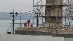 В Керчи на вершине горы Митридат начали работы по ремонту обелиска Славы. Как сообщает корреспондент Крым.Реалии, вокруг каменного 24-метрового обелиска возвели строительные леса.