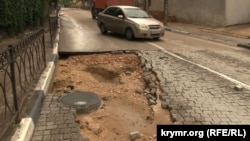 В Севастополе ливень разрушил отремонтированную дорогу на спуске Котовского, соединяющую район проспекта Острякова с железнодорожным вокзалом. Об этом сообщает корреспондент Крым.Реалии.