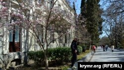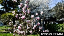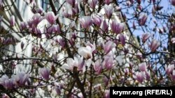 В Ялте, несмотря на похолодание, расцвели деревья магнолии Суланжа, сообщает корреспондент Крым.Реалии.