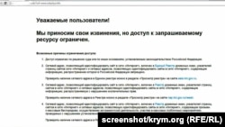 В Крыму, который с начала 2014 года аннексирован Россией, по решению «Роскомнадзора» уже заблокированы ряд информационных ресурсов. Российское ведомство регулярно выступает с требованием к интернет-провайдерам ограничить доступ к ресурсам под предлогом противодействия «разжиганию межнациональной и религиозной розни» и содержания «экстремистских материалов».