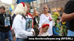 Многие встречали это шествие со слезами на глазах – впереди колонны шли те, кто за время конфликта в Украине потерял своих близких и родственников. Дети и матери несли в руках портреты погибших отцов. В рядах шествия прошли активисты и волонтеры.