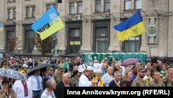Другие участники шествия – переселенцы Ольга и Валентина – в Киеве уже не первый месяц, признаются, бывает непросто, но о переезде из Севастополя не жалеют.