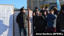 Организаторы акции также провели перфоманс, в котором наглядно показали действия российских властей и силовиков, происходившие после 26 февраля 2014 года в Крыму.