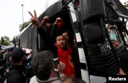По информации агентства AFP, протестующие пытались развернуть плакаты с антиправительственными лозунгами. Они выступали против поправок в конституцию, расширяющих полномочия президента Турции Реджепа Тайипа Эрдогана.