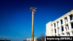 В Керчи 17 февраля на центральной площади Ленина отметили Масленицу, выставив гигантские фанерные балалайки и матрешки, а также информационные стенды о строительстве Керченского моста и трассы «Таврида».
