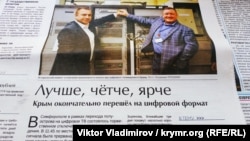 «Крымская газета» в статье «Лучше, четче, ярче» сообщает о переходе полуострова с аналогового телевидения на российский цифровой формат. 14 октября в филиале РТРС «РТПЦ Республики Крым» в Симферополе состоялось торжественное отключение аналогового телевидения. «Это знаковый день для всего Крыма. Этого ожидала вся страна, когда все субъекты Российской Федерации перейдут на цифровое телевидение, к лучшему качеству. Сегодня Республика Крым максимально готова к переходу. Все работали оперативно и продолжают этот процесс. Помимо этого региональные каналы будут также вещать в аналоговом телевидении. Поздравляю всех с переходом на «цифру», ‒ сказал по этому поводу подконтрольный России министр внутренней политики, информации и связи Крыма Сергей Зырянов. По словам министра, на протяжении года в Крыму проводилась «беспрецедентная по своим масштабам информационная кампания, связанная с переходом на цифровое ТВ». Он поблагодарил за содействие в ее организации администрации муниципальных образований, Министерство труда и социальной защиты Крыма, МФЦ и предприятие «Почта Крыма». По словам Зырянова, ближайшие три дня покажут, насколько республика хорошо подготовилась к переходу, и выявят недочеты, если таковые имели место.