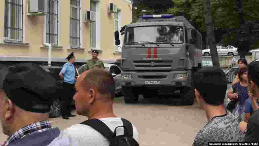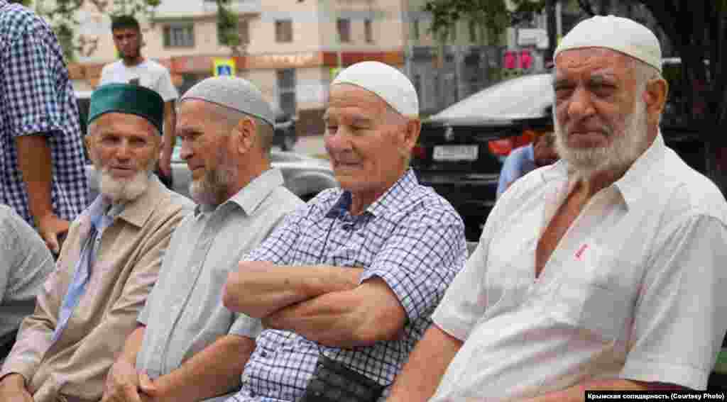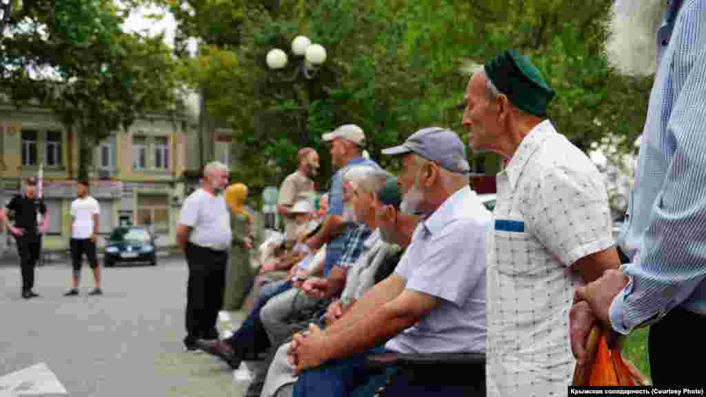 Вечером 8 июля под зданием российского правительства Крыма в Симферополе собрались десятки ветеранов крымскотатарского национального движения. Их действия – ответ на вчерашние массовые обыски и задержания в домах крымских татар и мусульман.