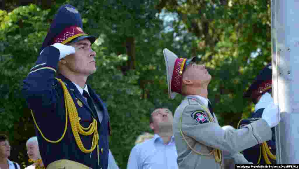 Руководство Крыма собрались на празднование Дня государственнного флага Украины в Симферополе, возле памятника Тарасу Шевченко, 23 августа 2013 года
