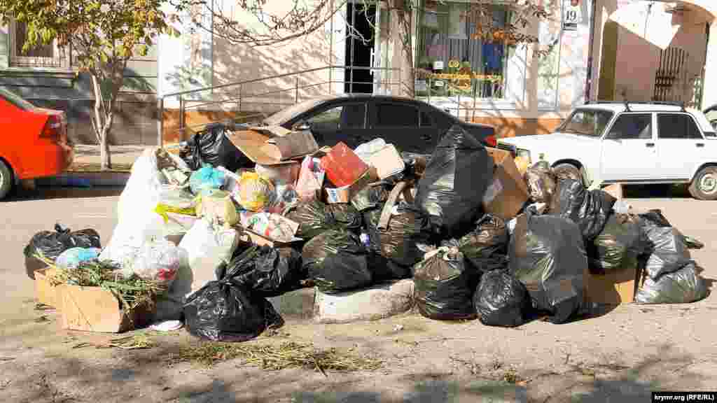 В центре Керчи местные жители складируют бытовые отходы прямо посреди улицы. Груды мусора лежат и на одной из центральных улиц города – улице Козлова, которая соединяет улицу Ленина и центральный рынок.