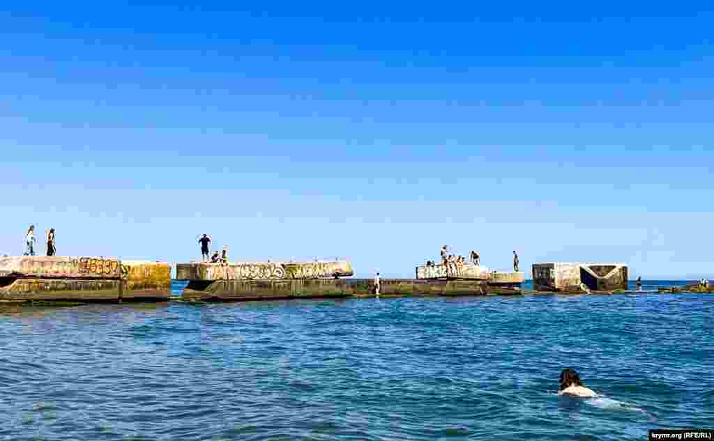 Устье реки с аварийным пирсом далеко небезопасное место для пляжного отдыха, в особенности для заплывов и ныряния