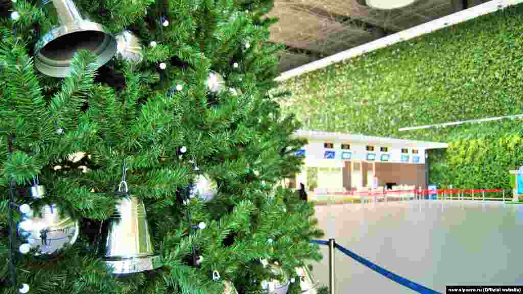 12 декабря в пассажирском терминале аэропорта Симферополя установили 20-метровую елку. В пресс-службе аэропорта утверждают, что это самая высокая в Крыму елка, установленная в помещении. После 2014 года Украина закрыла все крымские аэропорты для гражданской авиации. Любые полеты туда и оттуда являются нарушением законов Украины и международных правил. Российские авиакомпании, вопреки запрету, продолжают летать в аннексированный Крым в нарушение международных норм.