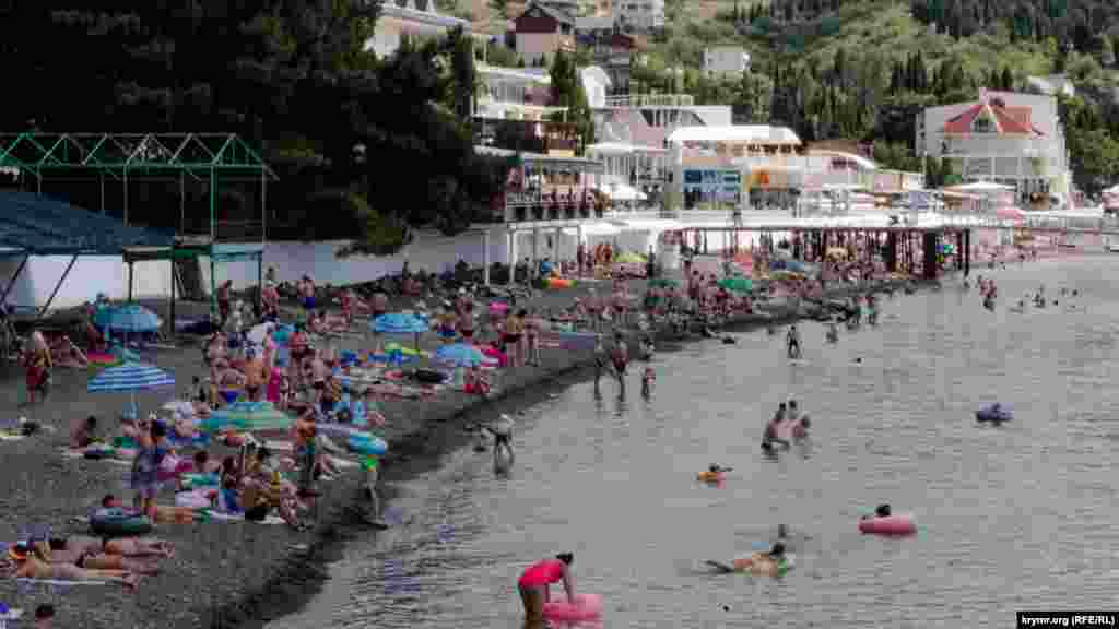 Сто ступеней вниз по крутому склону – и вы на одном из пляжей курортного села Малореченское. Туристов здесь практически нет. Часть пляжа занимают нудисты. Чуть дальше вдоль береговой линии – Сырная скала. Некоторым отдыхающим нравится отсюда прыгать в воду, а другим – размеренно плавать на катамаране.