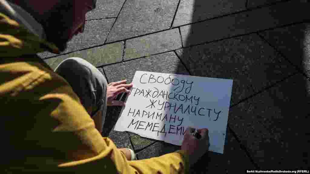 В Киеве на Майдане Независимости 1 октября прошла акция в поддержку гражданского журналиста, блогера из Крыма Наримана Мемедеминова, которого российские правоохранители обвиняют в публичных призывах к терроризму.