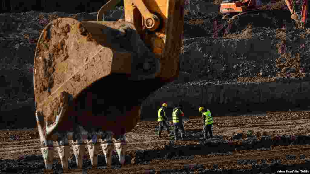 Экскаваторы на строительной площадке в районе села Бабенки (Россия)