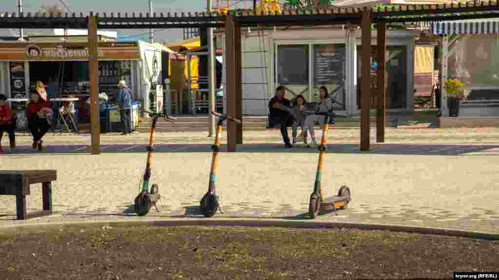 В этом году посетили главного парка Севастополя отмечают засилье арендованных электросамокатов, которые ездят по всем аллеям и пешеходным дорожкам. При этом на самокатах ездят не только подростки, но и люди среднего возраста, в том числе и немолодые женщины. Парковки для арендуемых электосамокатов расположены в разных концах парка, а на каждом припаркованном самокате висит инструкция с призывами «Катайся где угодно» и «Соблюдай правила дорожного движения». Согласно ценникам на самокатах, услуга аренды этого транспорта стоит от 3 рублей в минуту (примерно 1 грн 20 коп). И хотя «летающие» самокаты и доставляют неудобства местным жителям на тротуарах и пешеходных дорожках, севастопольские власти пока не приняли решений, регламентирующих движение самокатов на улицах города.