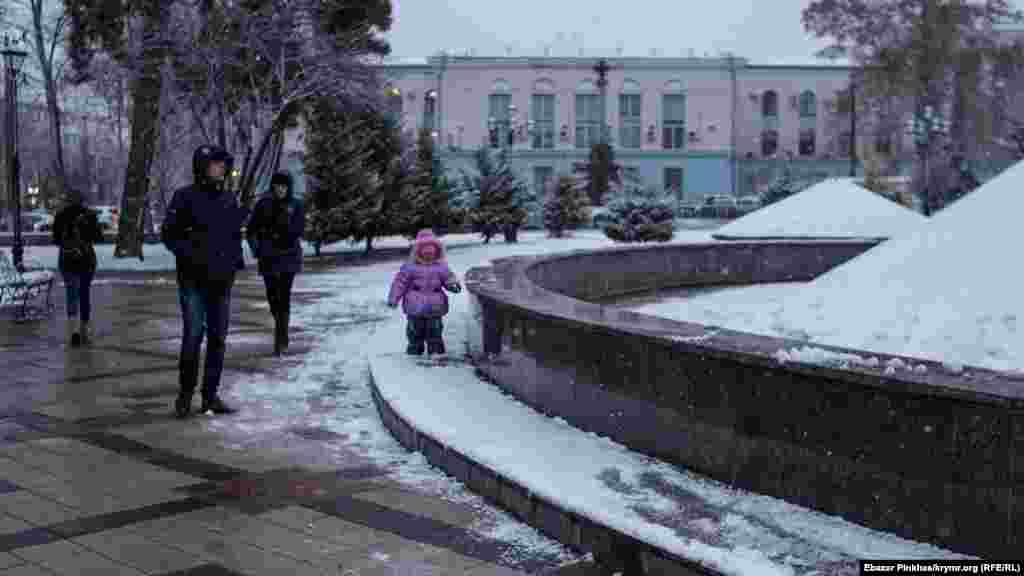 В первые две недели 2019 года снег в Симферополе выпадал лишь раз. Накануне синоптики обещали жителям крымской столицы настоящую зиму, и уже днем 16 января их прогнозы сбылись. Симферополь дождался своей порции снега.