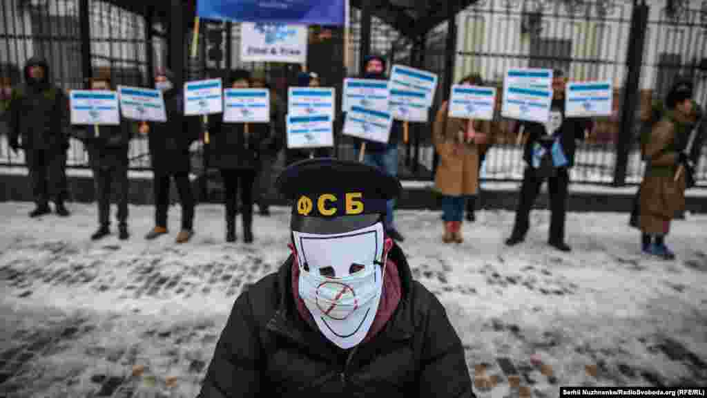 Под посольством России в Киеве прошла акция «Молчаливое знание или следствие ведут преступники», в рамках которой активисты общественной инициативы «КрымSOS» требовали от России расследовать насильственные исчезновения в аннексированном Крыму.