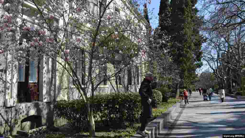 В Ялте, несмотря на пришедшее похолодание, зацвели деревья магнолии суланжа. В отличие от магнолии крупноцветковой, которая цветет в середине лета, суланжа зацветают первыми в середине весны.