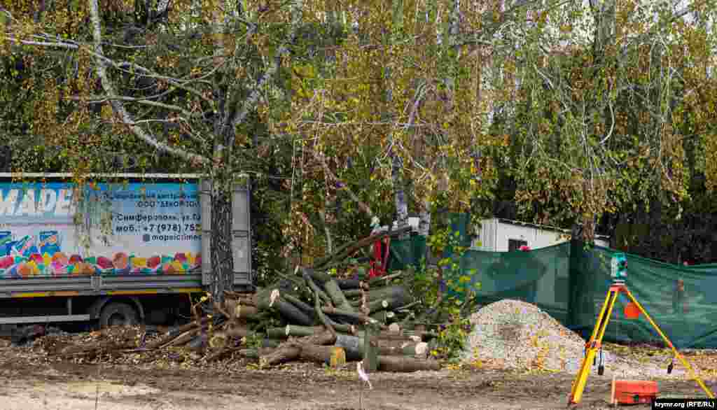 Корреспондент Крым.Реалии запечатлел, как исчезает роща возле симферопольского Дворца культуры профсоюзов.