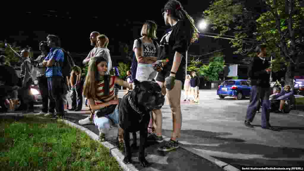 Здание посольства России в Украине в Киеве 25 мая подсветили языками пламени, изображением голодающего в России украинского режиссера Олега Сенцова и других политузников Кремля.