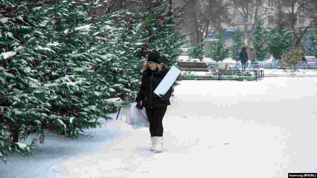 Заснеженный Симферополь: гололедица и пробки (фотогалерея)