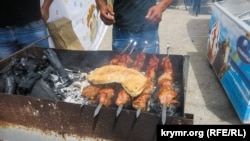 Честно признаюсь, барабульку так и не попробовал в этот день. Смотрю на соседний мангал – а там мясо.