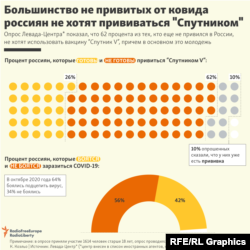 По данным исследования, опубликованного в журнале Nature Medicine, в России меньше желающих вакцинироваться от коронавируса, чем в Нигерии, Руанде и Буркина-Фасо, причем каждый пятый ссылается при этом на теории заговора. Отчасти такое недоверие к вакцинации связано с информационными сообщениями, которые распространяли в последние месяцы по российскому телевидению. В программе "Жить здорово" Елена Малышева в начале этого года утверждала, что риск умереть от коронавируса меньше, чем от инфаркта, и что молодым людям почти ничего не грозит. При этом ее заявления об опасности коронавируса часто противоречили одно другому, что заставило российских журналистов усомниться в достоверности ее слов. Последние мутации, среди которых наиболее опасная под названием "дельта", в отличие от ранних штаммов коронавируса, может привести к госпитализации и у молодых людей, и подростков – так же, как ранее это происходило в случае пожилых.