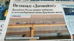 «Крымская правда» вышла с материалом под заголовком «Пора. Поехали!». Издание пишет, что российский резидент Владимир Путин лично открыл железнодорожное движение по мосту, проехав с крымской стороны до станции Тамань-пассажирская, где пообщался с рабочими-вахтовиками. «Они закончили все работы и готовятся возвращаться по домам. Во время поездки, за традиционным стаканом чая в «железнодорожном» подстаканнике, Путин в неформальной обстановке с сопровождавшими его мостостроителями рассказал, что ночью ему звонил взволнованный Аркадий Ротенберг. Волнение бизнесмена вполне объяснимо ‒ это самый значимый проект в его богатой событиями биографии», ‒ пишет газета. «У нас с вами приятное и очень важное событие. Оно важно для Крыма, Севастополя, всего юга России, да и для всей нашей страны, потому что, безусловно, такие объекты инфраструктурного характера, как этот грандиозный мост, который вы построили, будут влиять на всю экономику», ‒ сказал Путин, выступая перед рабочими в Тамани.