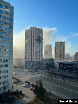 Корреспондент Радiо Свобода из Мариуполя также сообщает об обстреле своего дома и пожаре в одной из квартир.
